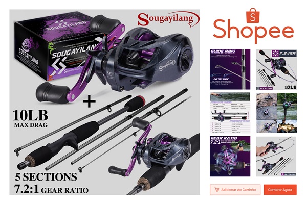 Conjunto Completo Carretel 1.70M/5. 5FT Engrenagem 7.2:1 Isca 10KG.